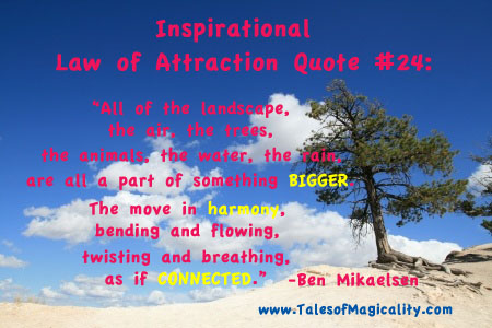 “All of the landscape, the air, the trees, the animals, the water, the rain, [are all a] part of something bigger.  They move in harmony, bending and flowing, twisting and breathing, as if connected” – Ben Mikaelsen